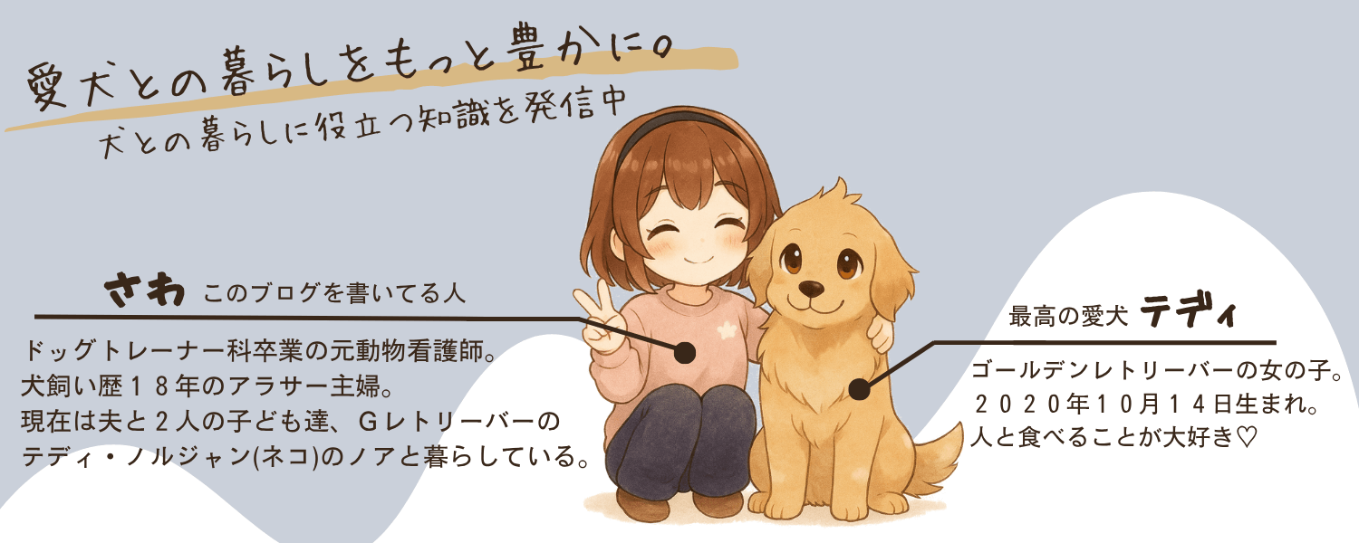 専門学校で2年間犬のトレーニングを学び、卒業後は動物病院に4年間勤務、その後結婚し現在は夫と2才の子供、Gレトリーバーのテディと暮らしながら、家事と子育ての合間に「犬との暮らしの中で役立つ情報」をこのブログで発信しています。