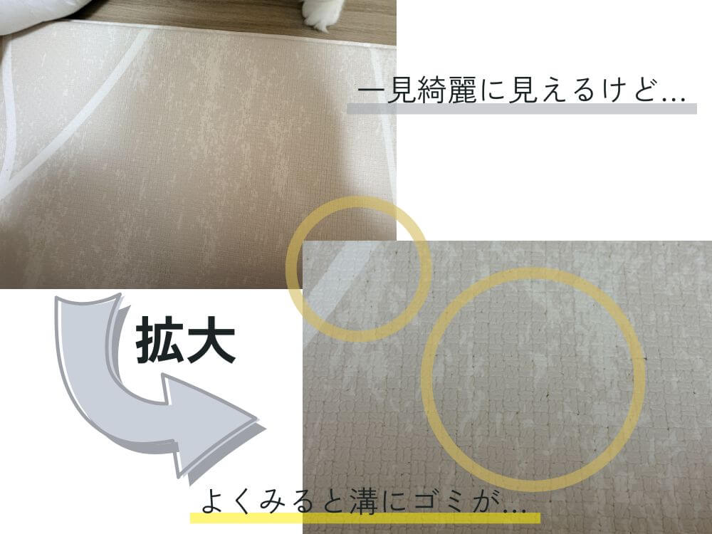 ただ、マット自体には細かな溝があるため、そこに細かなゴミが詰まることはあります。