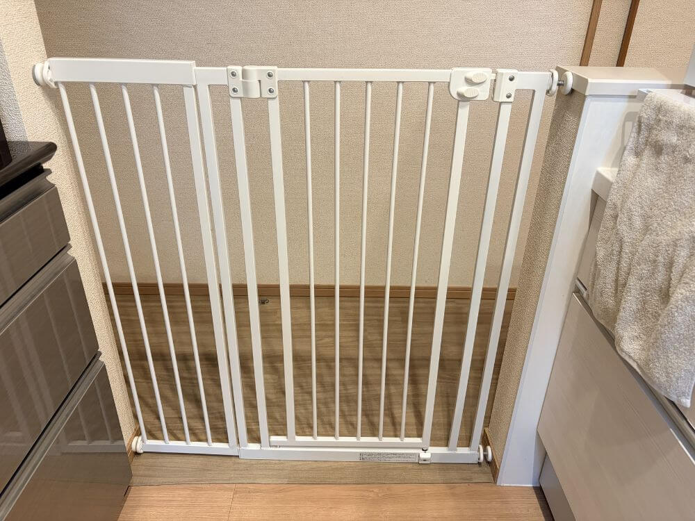ベビーサークルを置くスペースがない、愛犬と赤ちゃんの相性に問題なさそう・キッチンなど危険が多い特定の場所だけでも侵入を防止したい方には、ゲートの設置は最適かと思います。