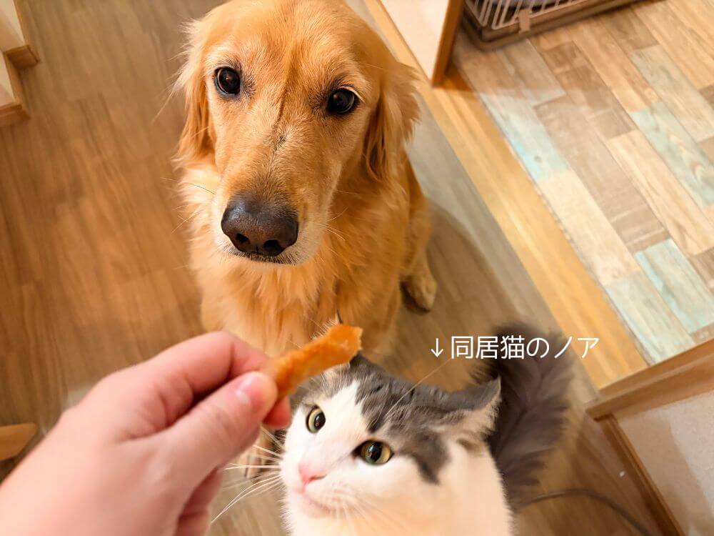 作ったササミジャーキーを早速愛犬のテディに食べてもらいました!