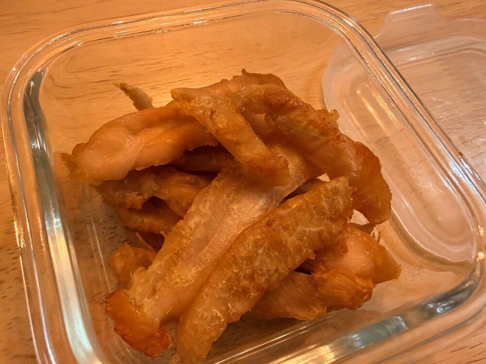 今回はおうちで簡単に作れるササミジャーキーについて紹介しました。