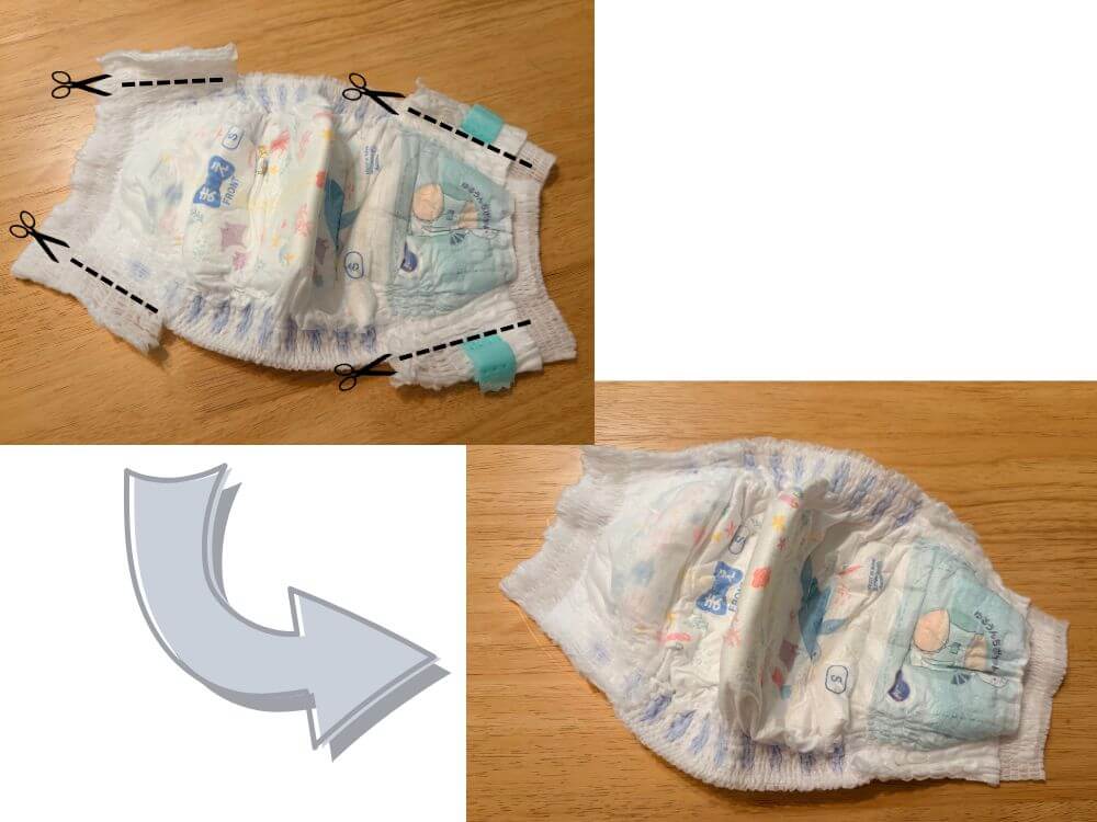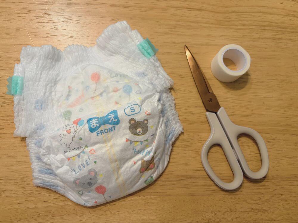 今回紹介する方法は、人間用の使い捨てオムツのパンツ型をアレンジする方法です。