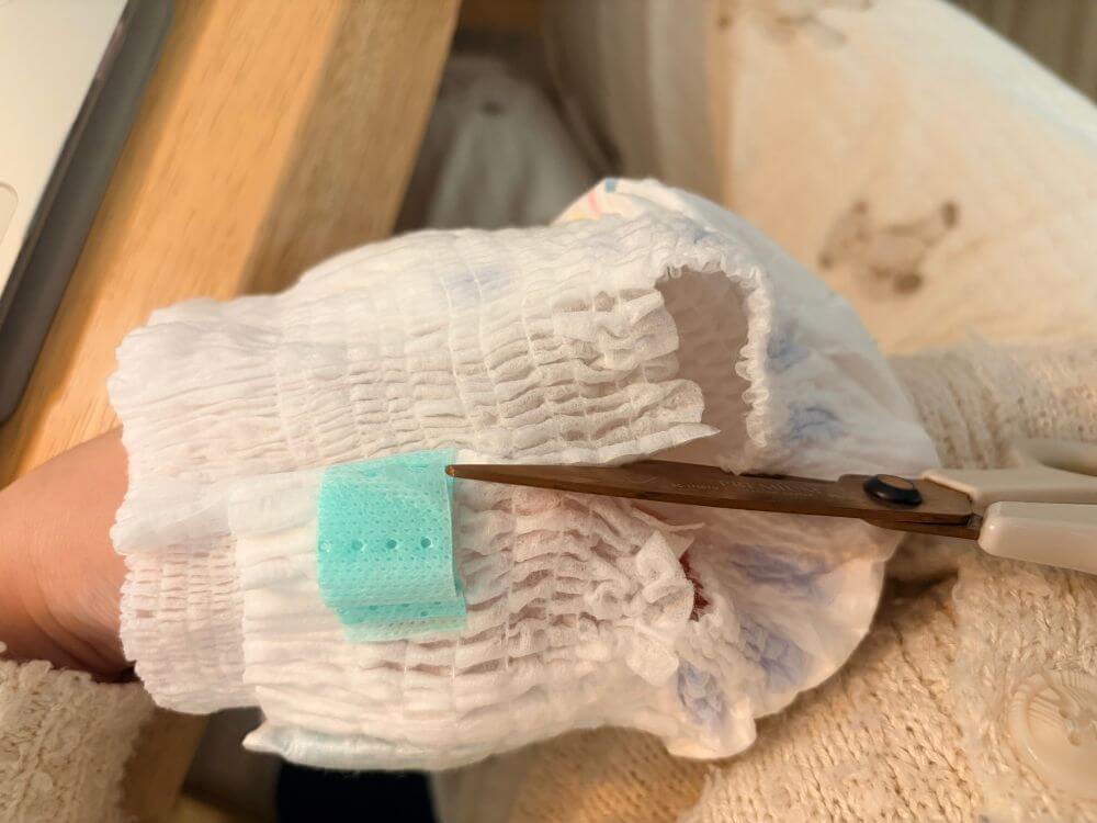 実は、赤ちゃん用オムツや尿取りパッドを少しアレンジすることで、マナーベルト型オムツとして代用することができます。